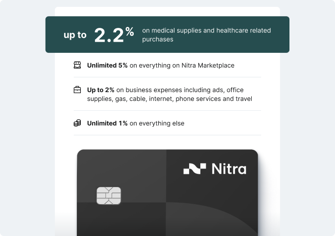 Save more. Spend smarter. Power your practice with the Nitra Card